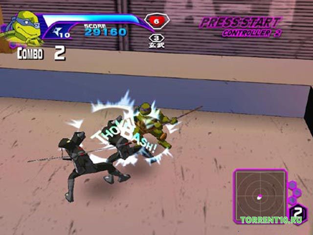 Для вас не будет сюрпризом, что четыре отважных друга будут разбивать в пух и прах армию своего основного неприятеля. Авторы многое взяли из файтинга, к такому жанру его можно будет отнести. Авторы слепили свой шедевр на основе двух первых серий знаменитого на весь мир мультсериала. Историю Черепашки Ниндзя 2003 они поделили на пару достаточно обширных глав и уже их разделили на дополнительные миссии, скачайте через торрент и удостоверитесь в этом. Ваши оснащенные различным оружием подопечные будут носиться за другими и разносить выскакивающих из разных мест злодеев. Их будет несколько типов, мы не будем раскрывать всех секретов иначе вам может стать неинтересно. В самом начале выберите одну черепаху если вы решили сыграть один или двух, если вы с другом. Далее бродите по верхнему городу и вершите справедливое правосудие.