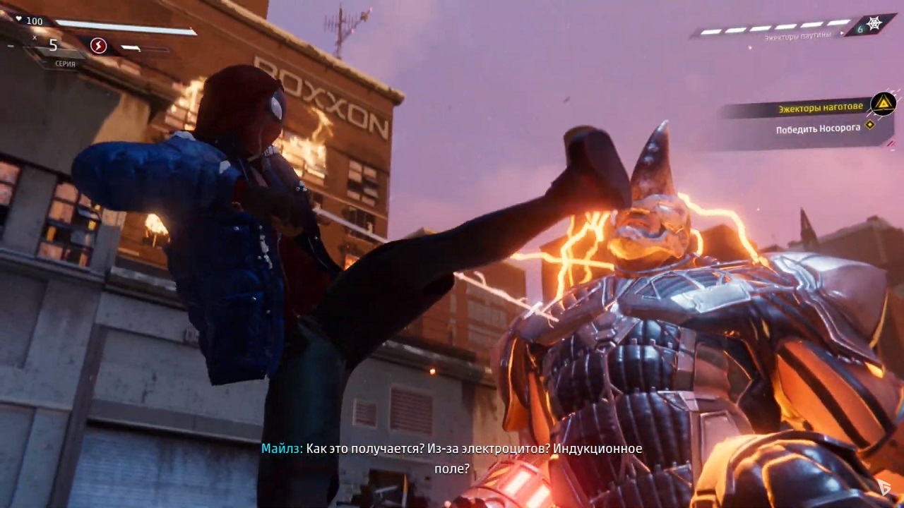 Улучшения представлены целым рядом навыков и различных гаджетов. У Моралеса есть мины дальнего действия, оборудование с голограммными истребителями, гравитационный колодец и много другого оборудования. Боевая система состоит из нескольких типов атак, выпадов и контратак. Вы можете поймать врага, используя гаджеты и окружающие предметы. Главный герой сталкивается с двумя группами: Корпорацией Роксона и Подпольем. Боссы выглядят как знакомые враги и представляют совершенно новых персонажей. Ньесен вам предстоит сразиться с Носорогом, Кингпином, Саймоном Крюгером, Тинкером и Бродягой. Игра открывает легендарную историю Человека-паука совершенно по-новому, и эта интерпретация не разочаровывает игрока. В центре сюжета находится интересный человек с уникальными способностями и взглядами на жизнь. Время, проведенное с ним, приносит истинное удовольствие. Начинайте играть и помогите Майлзу победить всех представителей зла.