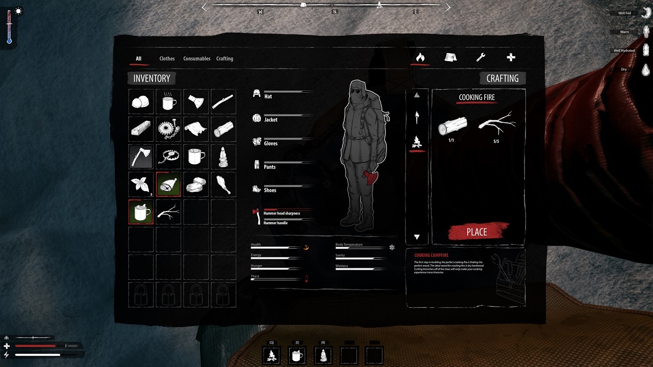 И ваши враги здесь - холод, голод, жажда, истощение. Вам нужно следить за достойным героем и следить за тем, чтобы он не голодал и не замерзал. Нам нужно найти места для ночлега, научиться разжигать огонь, и не только это. Изготовление предметов - из собранных ресурсов персонаж создает полезные устройства и сооружения и использует эти материалы также в других случаях. Костер - самый важный объект, который необходимо создать в начале. Исследовательская площадка - на участках расположены уже существующие здания, которые были оставлены предыдущими обитателями. В игре также есть другие предметы, помогающие игроку ускорить игру. Однако регулярно появляются дикие животные, победить которых практически невозможно.