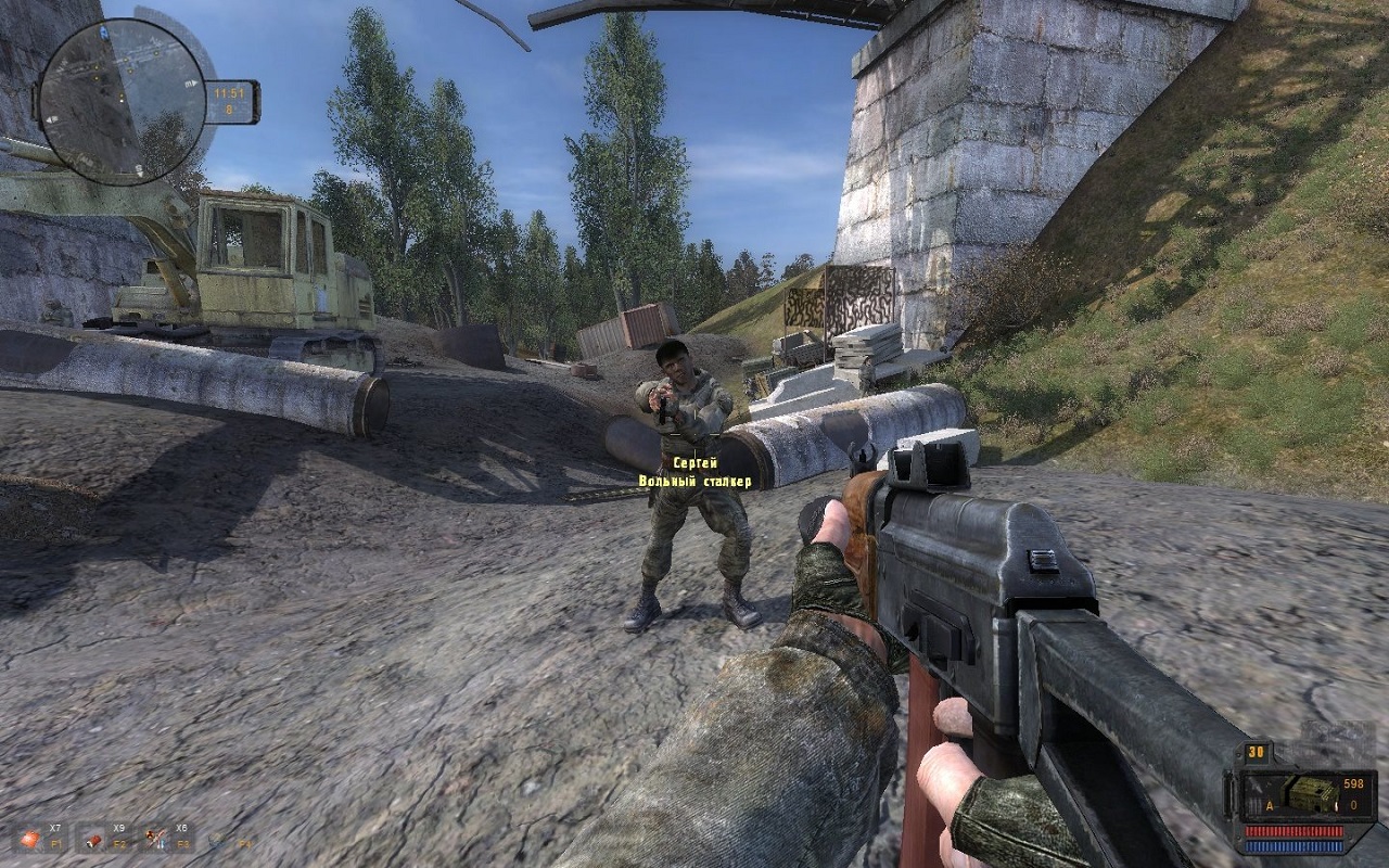 - Взаимодействие со сталкерами. Это очень важный момент. Поскольку главный герой ранее не бывал в Зоне Отчуждения, а е го напарник погиб, ему придется взаимодействовать с другими жителями Зоны Отчуждения. При отстреле бандитов важно не задеть участниками нейтральной группировки, иначе все остальные участники команды будут враждебно настроенными.