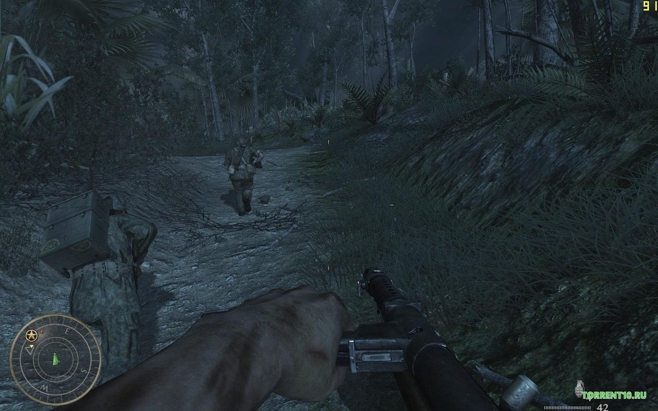 - В игре имеется одиночная кампания. Теперь игровой проект заканчивает повествование о Второй мировой войне. В данной части игроку в лице морпеха в первый раз необходимо сразиться против японской армии. А все уровни за советского солдата построены на борьбе с немецким войском. Для успешного прохождения всех миссий, необходимо быть осторожным, скрытным и метким.